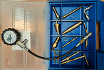 Компрессометр дизельный GrunBaum CR-50, в наборе с переходниками в виде фальш-форсунок и используется для работы с дизельными двигателями системы Common Rail.