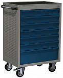 6 ящиков. Для хранения инструмента в ЕВРОЛОЖЕМЕНТАХ. Боковые панели с перфорацией (для установки аксессуаров). Цельносварная конструкция корпуса тележки. Центральный замок Euro-Lock. Шариковые направляющие полного выдвижения. Размеры (высота x ширина x глубина): 850 х 700 х 460 мм. Вес: 58,8 кг.