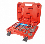 Адаптеры с положительной и отрицательной резьбой для различных моделей предупреждают повреждение поршней и сальников. Имеет два привода с правосторонней и левосторонней резьбой для различных марок автомобилей. Общее количество предметов в комплекте: 21 шт.
