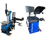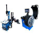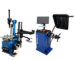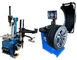 Комплект из автоматического шиномонтажного станка TS-3226А. Для дисков: 11÷24”. В комплекте: полноценная 3-й рука для работы с жесткой и низкопрофильной резиной RUNFLAT. + встроенный бустер 24 литра (взрывная подкачка) + пистолет для подкачки шин + монтажка + регулятор давления с влагоотделителем и манометром. + Proxy-8-3 автоматический балансировочный станок для колес с диаметром диска 9-28 дюймов, при ручном вводе до 30 дюймов и шириной до 20 дюймов. В комплекте: монитор SVGA + кожух с автозапуском + клещи + кронциркуль + пневмоприжим + набор конусов + лазерная навигация + электромагнитный тормоз + ультразвуковой датчик ширины.