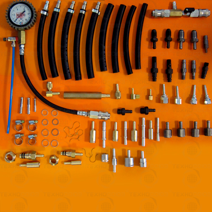 С помощью данных наборов диагностика топливных систем проводится в любых точках топливной магистрали, во всей цепочки ее элементов: [вход в насос] - [насос] - [выход из насоса] - [подающая магистраль] - [вход в фильтр] - [фильтр] - [выход из фильтра] - [ топливная рейка] -[порт Шредера] - [ обратный клапан] - [ обратная магистраль] - [выход после обратного клапана] – [вход в бак].