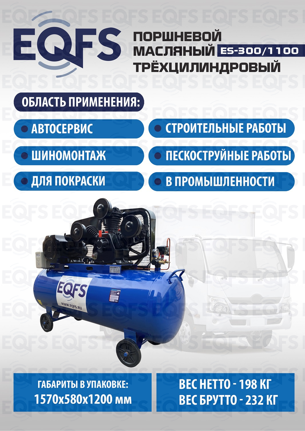 Технические особенности компрессор поршневой ES-300/1100 (5 кВт):