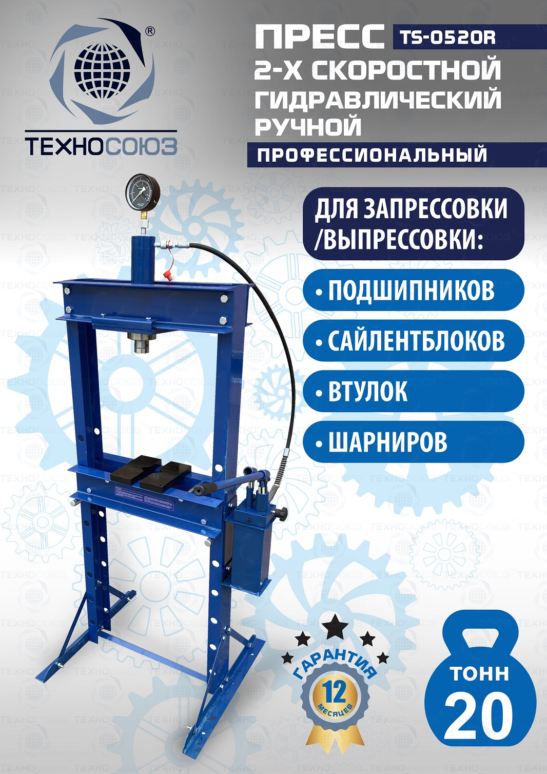 TS-0520R Пресс гидравлический ручной, 20 тонн