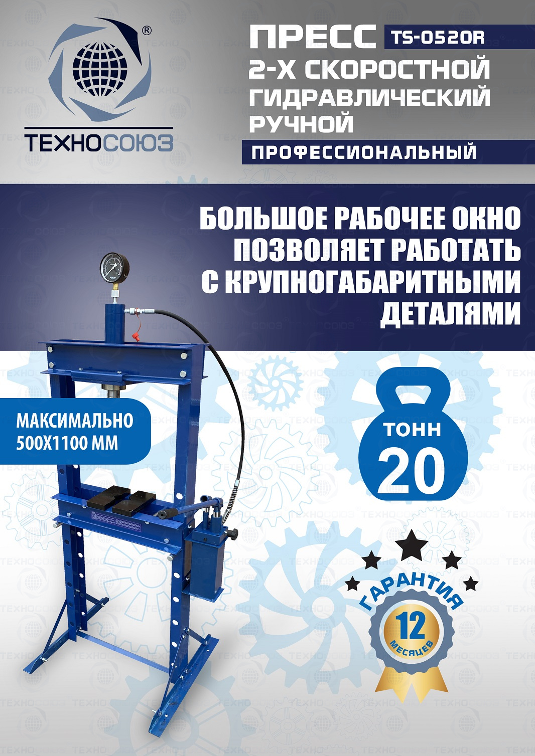 · Пресс укомплектован гидравлическим ручным насосом с максимальным усилием 20т.