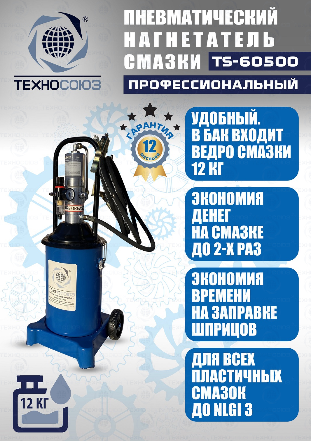 TS-60500 Нагнетатель смазки пневматический 12 л